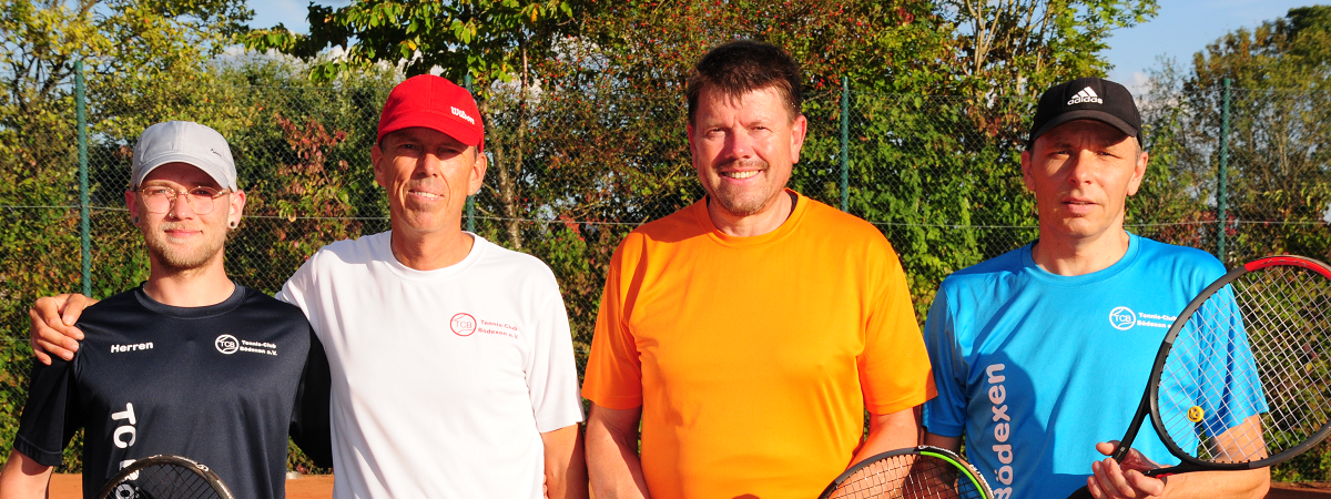 Der 8. Bödexer Doppeltag brachte viel Spaß und gute Laune auf unser Gelände. Acht Doppel in zwei Gruppen spielten jeweils ein Siegerpaar aus. Dies sind die Ergebnisse: Gruppe 1Häger/Reichmann(Höxter)M.Senger/Hennig(Bödexen)Gundelach/Sibila(Höxter)R.Senger/S.Klinger(Bödexen) M.Senger/Hennig-Häger/Reichmann 3:6 3:6Gundelach/Sibila-R.Senger/Klinger 6:1 6:1M.Senger/Hennig-Gundelach/Sibila 1:6 3:6Häger/Reichmann-R.Senger/Klinger 6:1 6:0M.Senger/Hennig-R.Senger/Klinger (Sieger ist 3ter) 6:3 6:2Häger/Reichmann-Gundelach/Sibila (Sieger ist 1ter) 6:1 6:3 Gruppe 2Pollmann/H.Klinger(Bödexen)D.Senger/Sertschuk(Bödexen)Schnegelsberg/Renz(Holzminden)Rempe/Winkler(Höxter)…