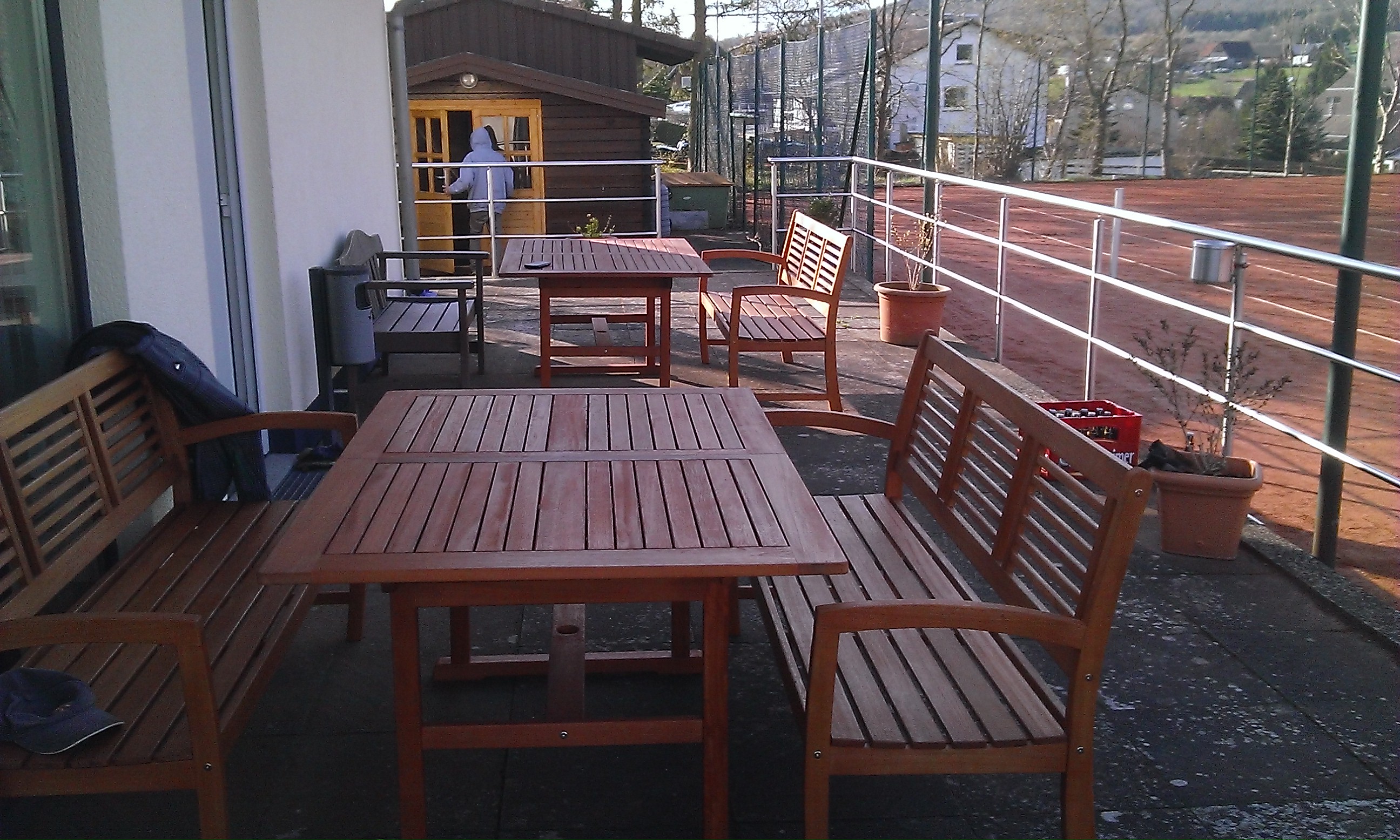 Auf der Terrasse des Tennisheims gibt es zudem neue Möbel. Da wird das Kaltgetränk gleich noch viel besser schmecken, während man dem Treiben auf den Plätzen zusieht.